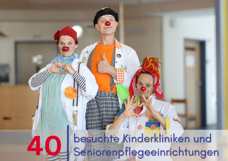 „Lachen hilft heilen“ – so lautet die Devise des Wiesbadener Vereins DIE CLOWN DOKTOREN. Durch ihre Arbeit helfen die Clowndoktoren Heilungsprozesse bei erkrankten Kindern mit Ablenkung, Fröhlichkeit und Humor zu unterstützen und zu fördern. Klinikaufenthalte werden durch die Humorvisiten kurzweilig und bunt, Untersuchungen verlieren ihren Schrecken, wenn ein Clowndoktor an der Seite des Kindes ist. Clowndoktorenbesuche in Seniorenheimen schaffen Leichtigkeit und lockern den Alltag der Bewohnerinnen und Bewohner wohltuend auf.